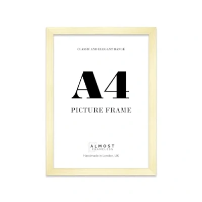 Almost Frameless A4 Gold Picture Frame Fits (21 x 29.7cm 8.3 11.7in) Poster, Photo, Artwork, or Print. Thin Edge Slim Portrait and Landscape Display with Wall Hooks