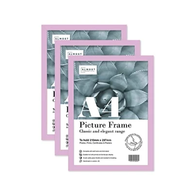 Almost Frameless A4 Lilac Picture Frame Set of 3, Display Gallery Wall, Poster, Photo, Artwork, or Print,