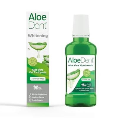 AloeDent Whitening Toothpaste 100ml & Aloe Vera Mouthwash 250ml Fluoride Free, Alcohol SLS Naturally White Teeth Healthy Gums, Vegan