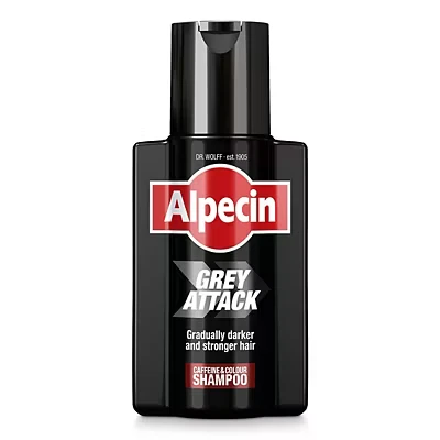 Alpecin Grey Attack Caffeine & Colour Shampoo for Men 1x 200ml Gradually Darker and Stronger Hair Controlled Natural Looking Effect Less Greys Against Thinning