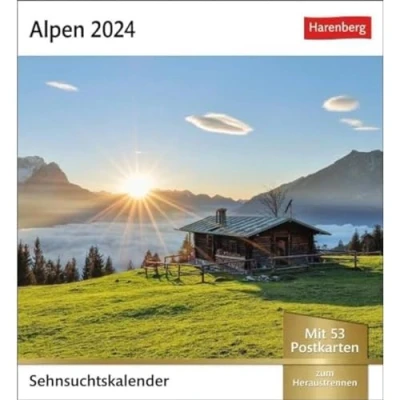 Alpen Sehnsuchtskalender 2024. 53 Postkarten in einem Fotokalender für Bergfreunde. Beeindruckende Panoramen Kalender zum Aufstellen: ... (Sehnsuchtskalender von Harenberg)