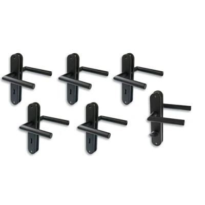 Alpertec Long Plate Door Fittings Set of 6 Stainless Steel Black for 5 Room Doors with Deadlock Holes and 1 Bathroom Toilet Handle