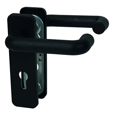 ALPERTEC Nylon FIRE Door Retainer Square Lever Handle PZ Set Fittings 9 mm Spacing 72 mm, Black, 40150020 K1