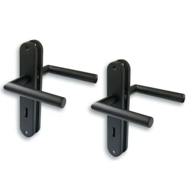 Alpertec Renovation Door Fitting, Long Plate Set of 2, Stainless Steel, Black, for 2 Room Doors with Deadlock Holes, Handle, Handle