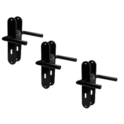 Alpertec Renovation Door Fitting, Long Plate Set of 3, Stainless Steel, Black, for 3 Room Doors with Deadlock Holes, Handle, Handle