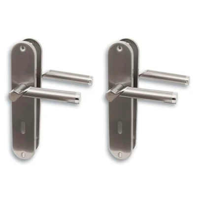 Alpertec Renovation Set II Door Fitting, Long Plate of 2, Polished Stainless Steel/Satin Gloss Varnished for 2 Room Doors with Deadlock Holes, Handle, Handle