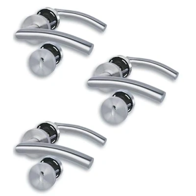 Alpertec Set of 3 Door Fittings, 3, Satin Stainless Steel for Room Doors with Deadlock Holes, Cliprosette, Diameter 52 mm, Handle, Handle