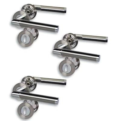 Alpertec Set of 3 Rosette Door Fittings Chrome/Stainless Steel Coloured Satin for Room Doors with Deadlock Hole Screw Diameter 52 mm Handle