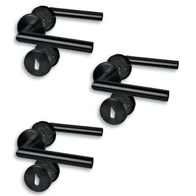 Alpertec Set of 3 Rosette Fittings, Stainless Steel, Black, for Room Doors with Deadlock Holes, Cliprosette, Diameter 52 mm, Door Handle, Handle