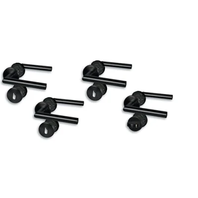 Alpertec Set of 4 Rosette Fittings, Stainless Steel Black for 3 Room Doors with Deadlock Holes and 1 Bathroom Toilet Door, Cliprosette, Diameter 52 mm, Door Handle, Handle