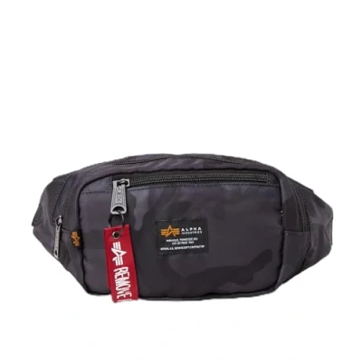 Unisex Waist Bag FIT: One Size DETAIL 1: Woven Alpha Industries label on the front DETAIL 2: Adjustable width DETAIL 3: RBF tag