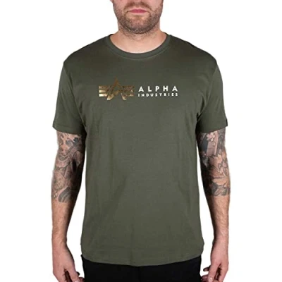 Alpha Industries Foil Print T Shirt for Men, Dark Olive, M