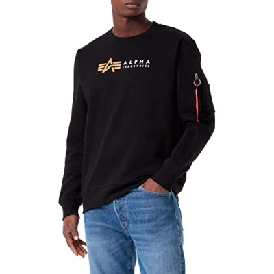 Alpha Industries Label Sweater Sweatshirt, Size: Medium, Black
