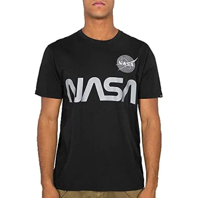 Alpha Industries Men's NASA Reflective T Shirt, Black, L