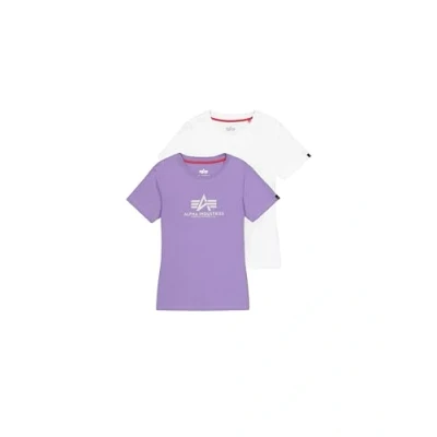Alpha Industries Women's New Basic BL 2 Pack T Shirt, White/Violet Storm, S