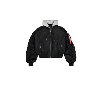 Alpha Industries Women's Short Hooded Light Bomber Jacket, Black, M