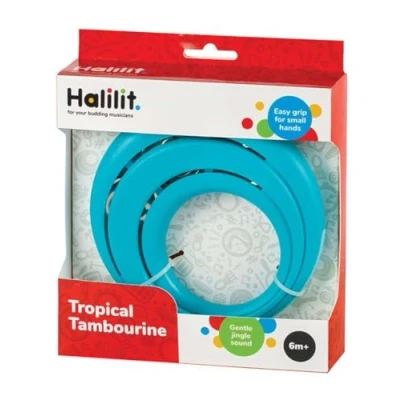 HALILIT TROPICAL TAMBOURINE - Introduce your little one to the wonderful world of music and rhythm with this professional style Halilit Tropical Tambourine BRIGHT TROPICAL COLOURED TAMBOURINE - This chunky, brightly coloured tambourine has a comfortable grip designed especially for little hands to hold and produces a rich and super sound. EDUCATIONAL MUSICAL TOY - This musical toy helps develop creativity, motor skills, hand-eye co-ordination and teaches cause and effect. DURABLE & SAFE MUSICAL INSTRUMENTHalilit's durable, safe and high quality musical instrument toys are used in pre-schools, baby groups and nurseries across the country. 6 MONTHS +. This sensory music toy is suitable for boys & girls 6 months and over. Colours vary, only one item will be dispatched at random