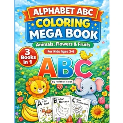 Alphabet ABC Coloring Mega Book: Animals, Flowers & Fruits Fun and Easy AZ Pages for Kids Ages 36