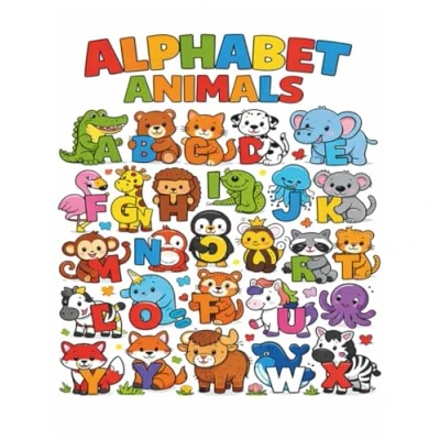 Alphabet Animals Coloring Book: Learn Letters A to Z with Cute Trace Letters, Color Adorable Animals, and Enjoy Fun Activities for Kids Ages 4 8