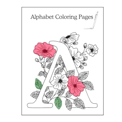 Alphabet Coloring Pages Worksheet in Black and White Illustrative Style: words a to z