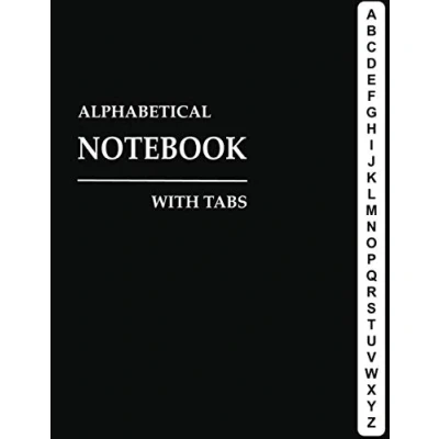 Alphabetical Notebook with Tabs: Large Lined Journal Organizer A Z Tabs Printed, Alphabetic Notebook, Smart Black Design