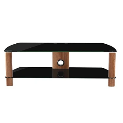 Amazon Wood effect supports Classic AV styling with spun aluminium disc details Toughened glass tested to British and European standards Cable Management Shelf suitable for Sound Bars with a maximum width of 1150mm