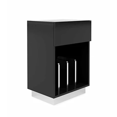 Turntable stand with vinyl storage Part of the Element AV Range Beautiful gloss finish with glass top and drawer front Large media drawer High gloss PVC finish with polished metal dividers