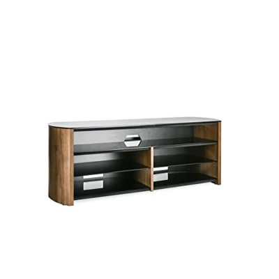 Stunning real wood veneer finish Practical open design with adjustable shelves Safety glass toughened to British & European standards Cable management facility Piano black glass, matching the design of latest TV screens