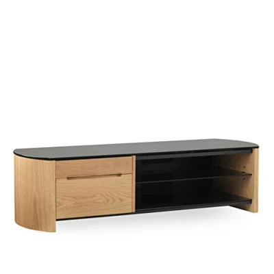 Stunning real wood veneer finish In-built storage for your gadgets and media Adjustable glass shelf Cable management Suitable for Soundbars with a maximum width of 710mm (1350 model only)