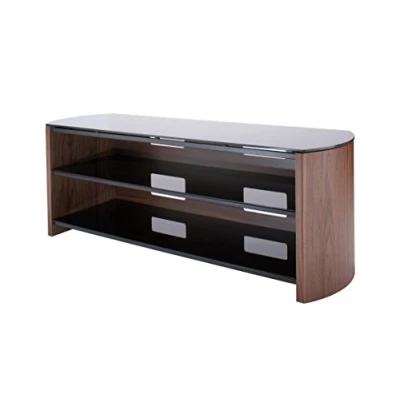 Stunning real wood veneer finish Practical open design with adjustable shelves Safety glass toughened to British & European standards Cable management facility Piano black glass, matching the design of latest TV screens