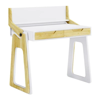 CurrysGood to know- Thanks to the convertible desktop riser you can choose to work sitting down or standing up- Featuring a gloss white finish with oak accents, it will nicely complement any home office or living room- With 2 drawers, you'll have plenty of storage for your office supplies and paperwork- It can support up to 40 kg, so you can use it even for heavier computers and monitors
