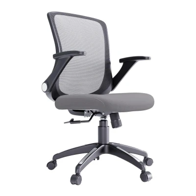 AmazonFabric seat with foam cushioning Mesh backrest with lumbar support Flip-back arms Locking tilt mechanism with tensioncontrol Height adjustable Available in two color options: black, grey Maximum load capacity: 118 kg Seat Dims (mm): H 475-575 x W 530 x D505