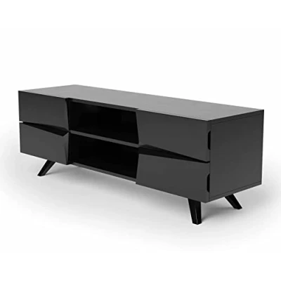 Large modern TV stand with stylished bevelled edges 4 drawers with magnetic catches Front open storage space with cable management