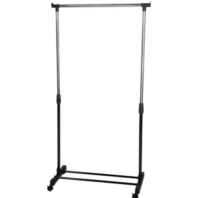 ADJUSTABLE CLOTHING RACK - Adjustable from 93 to 158 cm, perfect for clothes of different lengths MOBILE CLOTHING RACK WITH WHEELS - Easy to move thanks to solid wheels, ideal for flexible use With practical hooks for accessories - additional hanging hooks for hanging bags, scarves or other accessories Space-saving rack for small spaces. Ideal for small spaces or as a temporary solution thanks to its compact design