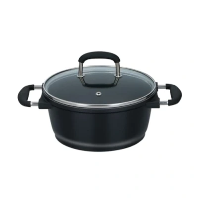 alpina Cooking Pan Diameter 20 cm 2.2 L Casserole All Heat Sources with Lid Dishwasher Safe Black