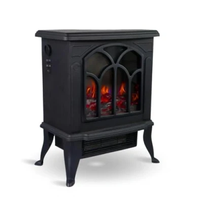 DECORATIVE ELECTRIC FIREPLACE - Realistic flame effect that works with or without heating for a warm atmosphere in any season in any room. ELECTRIC HEATING 800W-1500W - Two heating powers to choose from according to your comfort needs and the size of your room, practical and efficient. FAKE FIREPLACE WITH THERMOSTAT - Adjustable thermostat to maintain a constant temperature while optimizing energy consumption and safety. CLASSIC STYLE STOVE STOVE - Stylish black metal design with curved legs, ideal for living room, bedroom or home office. OVERHEATING PROTECTION - Built-in auto shut-off function to prevent overheating during prolonged use.