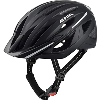 ALPINA HAGA, black matt, 58 63 cm, bike helmet for men and women, high level of safety & comfort with Ergo Flex integrated light