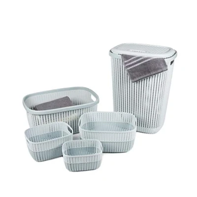 alpina Laundry Basket Set 5 Pieces 1 with Lid Knitting Pattern Blue