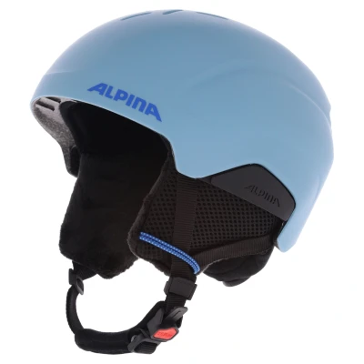 The Alpina Pizi ski helmet is made for young skiers, ensuring safety and comfort on the slopes. This kids' ski helmet is designed with advanced technologies to provide optimal protection. Constructed with a robust Ceramic shell and EPS core, the helmet utilizes In-mould technology for enhanced durability and impact resistance. The Ergomatic system ensures easy handling even with gloves, while the fixed ventilation keeps airflow consistent for added comfort during active use. Additional features include a built-in neck warmer for extra warmth and a Wheel Fit System that allows precise adjustments to achieve a snug fit. The Y-clip enhances stability by securing the straps in place. This product belongs to the Alpina Junior series, specifically tailored for young skiing enthusiasts who require reliable gear that adapts to their dynamic activities on snowy terrains. The Alpina Pizi ski helmet is an essential piece of equipment for kids embarking on winter sports adventures, providing them with uncompromising safety and comfort throughout their skiing experiences.