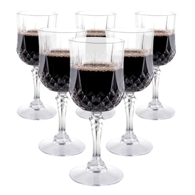 alpina Plastic Wine Glasses Set of 6 200ml Reusable Glass with Crystal Effect Suitable for Soft Drinks, Red and White Hand Washable Transparent