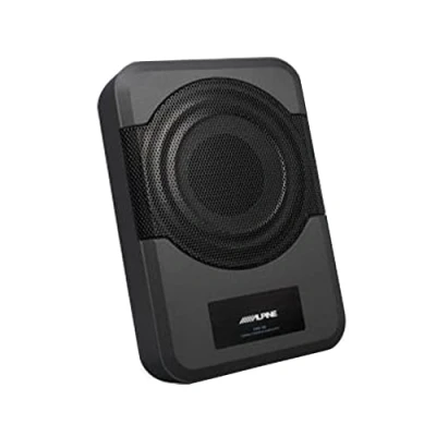 Alpine PWE S8 Auto Amplified Subwoofer, 8 Inches, 240W, Black/White
