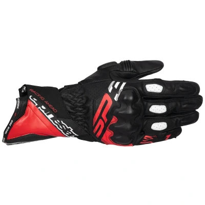 Alpinestars SP-3 Gloves Black / Bright Red / White Derived from Alpinestars involvement in top-level racing, the long cuff, SP-3 Gloves are packed with many race-inspired performance features. Accordion panels on the thumb and finger bridge enhance flexibility and control, while the pre-curved construction ensures a natural, ergonomic fit to reduce hand fatigue and improve freedom of movement. Constructed from full goat leather with padded reinforcements, these gloves deliver exceptional durability and abrasion resistance, ensuring lasting comfort and protection for the road. Key Features: With their long cuff design and dual closure system that includes a cuff adjuster and wrist strap, the SP-3 Gloves provide extended coverage and a secure fit, minimizing the risk of slippage or displacement during intense riding sessions Featuring grip inserts on the thumb and palm, the SP-3 Gloves offer enhanced grip and control, even in challenging riding conditions Construction: Full leather construction for optimal durability and abrasion resistance Accordion panels on the thumb and finger bridge for enhanced flexibility Equipped with a cuff adjuster and wrist strap closure for a secure and customized fit Grip inserts on the thumb and palm enhance control and grip during rides Touchscreen compatible E-touch tip on the index finger for convenience without compromising safety Inner seam-resistant construction on the fingers ensures a comfortable and distraction-free riding experience An integrated pull tab on the gloves makes it easier to put on and take off the gloves, even in challenging conditions Protection: Level 1 Knuckle Protection PU covered SP knuckle protection Finger bridge (all phalanges) Padding reinforcement on fingers, palm, cuff, and thumb Shock absorber foam on side palm Rubber grip reinforcement