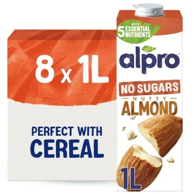 Alpro Almond No Sugars Plant Based Long Life Drink, Vegan & Dairy Free, 1L (Pack of 8)