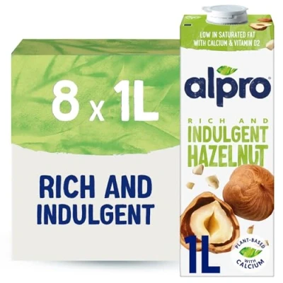 Alpro Hazelnut Plant Based Long Life Drink, Vegan & Dairy Free, 1L (Pack of 8)