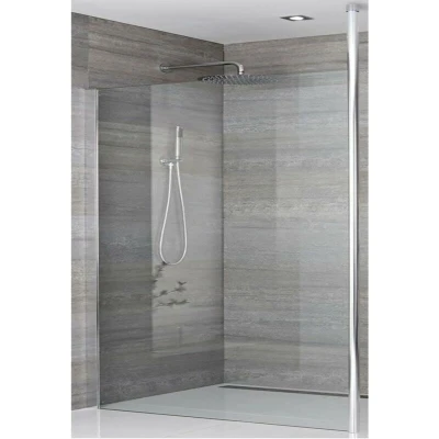 General description Create a stylish look in your bathroom with the modern Milano Alto 700mm recessed wet room shower enclosure, which includes a wet room screen, chrome profile, and floor to ceiling pole. The shower screen is made from premium quality 8mm toughened safety glass and has a height of 1950mm to catch more shower splashes and accommodate taller users. The floor to ceiling pole adds a contemporary touch, enhancing the elegance of your bathroom. Technical specifications Screen dimensions: 700mm x 1950mm Pole dimensions: 34mm x 3000mm Glass thickness: 8mm Construction material: Toughened safety glass and aluminium Manufactured to meet EN14428 standard Covered for 10 years Compatibility and accessories Designed for installation within a recessed bathroom area Floor to ceiling pole can be cut to the desired size