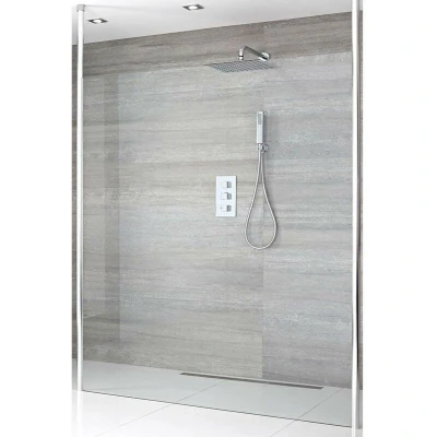 General description Make your bathroom exude style with the Milano Alto 800mm floating glass wet room shower enclosure, which includes a wet room screen, chrome profile, and two floor to ceiling poles. This enclosure is designed to enhance your showering experience while providing a modern aesthetic. Technical specifications Width: 800mm Height: 1950mm Glass thickness: 8mm toughened safety glass Material: Aluminium and glass Manufactured to meet EN14428 standard Other information This product is covered for 10 years.