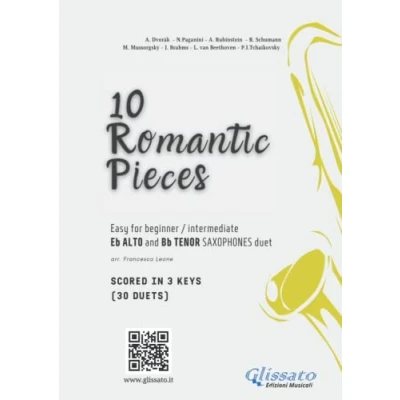 Alto and Tenor Saxophones duets book 10 Easy Romantic Pieces scored in 3 keys (30 duets): beginner intermediate