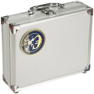 Alu Münzkoffer für Eurosätze: Inhalt komplett mit 6 Tableaus