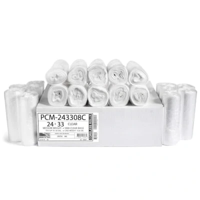 Aluf Plastics 12 16 Gallon Clear Trash Bags (1000 Count) 24" x 33" PCM Series Premium High Density 8 Micron Equivalent Garbage for Bathroom, Office, Industrial, Commercial, Janitorial