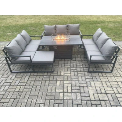 Aluminium 10 Seater Garden Furniture Outdoor Set Patio Lounge Sofa Gas Fire Pit Dining Table with Big Footstool Dark Grey Fimous